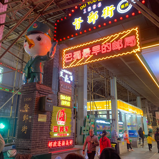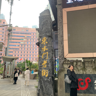 After we returned from the institute, we went to visit a well-known tourist attraction around Chongqing called Hong Ya Cave (洪崖洞). It is known for the pagoda lights around the cave, and it is called "the city of lights". Along the way, we also saw some interesting architecture.